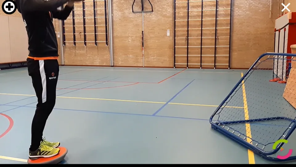 + tegen muur gooien op 1 been met tennisbal (met tweetallen)