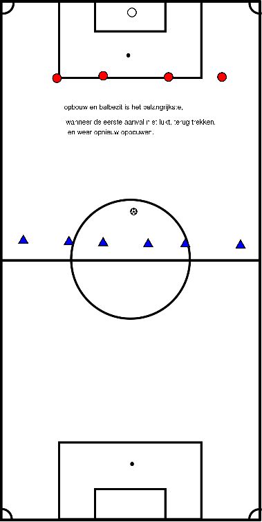laat de aanvallers beginnen vanaf de midden lijn, ze dienen vooral te focussen op balbezit.