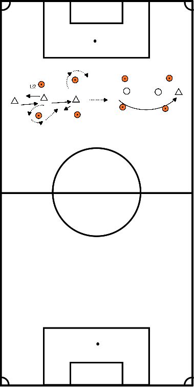 Voetbaloefening: pas / trapvorm
