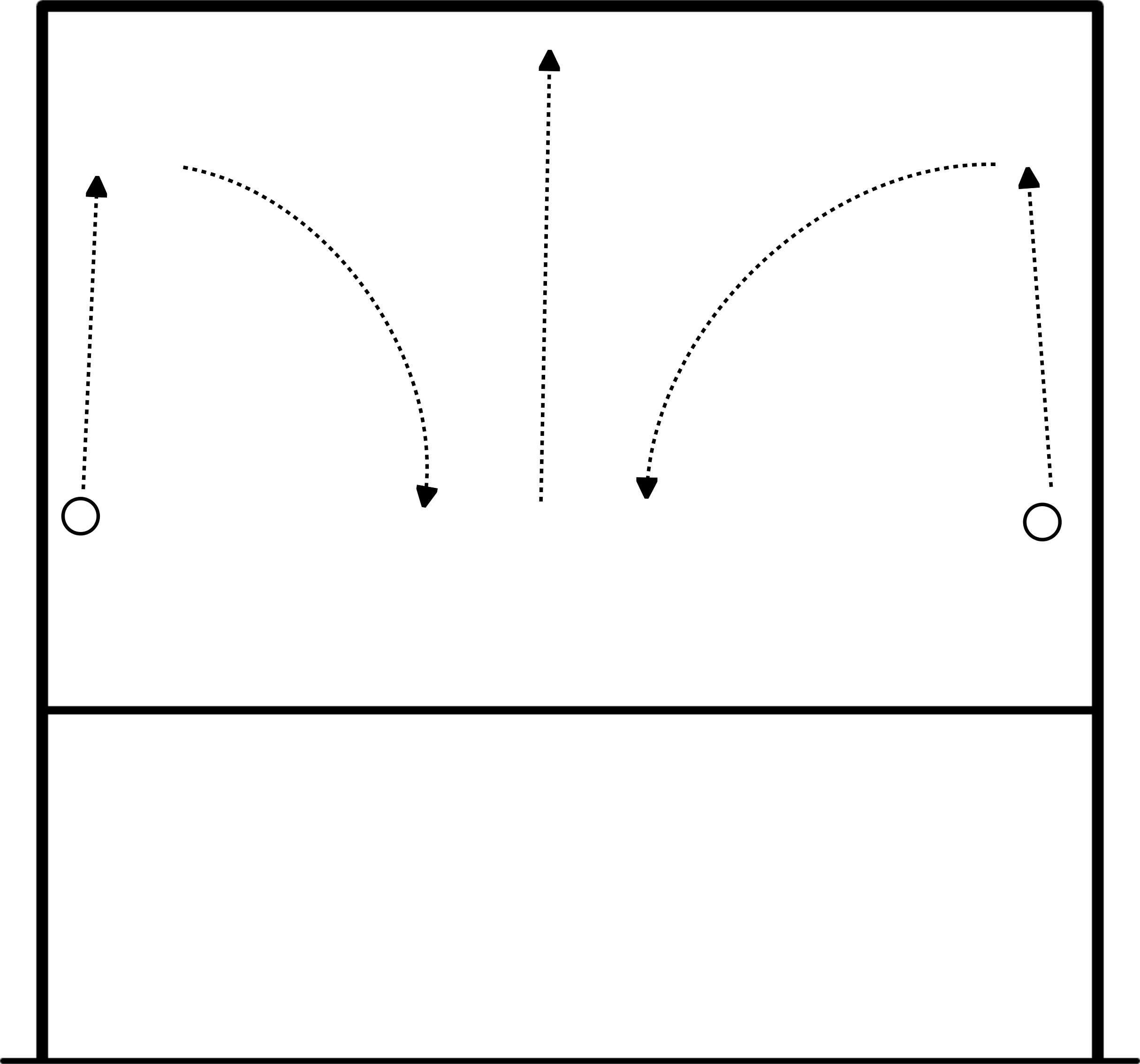 - Verplaatsing naar 7M en daarna rol maken naar midden van het veld.