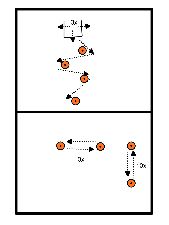- Op een teken steken de spelers het veld over in drie mogelijke richtingen: de korte zijde, de lange zijde of diagonaal.