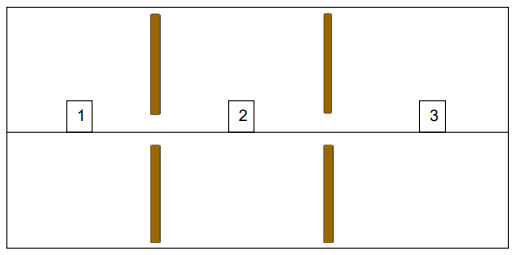 - 1 team aan de kant van de zaal en het andere team aan de andere kant.