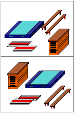 - Je moet met 2 voeten tegelijk op de landingsmat landen.