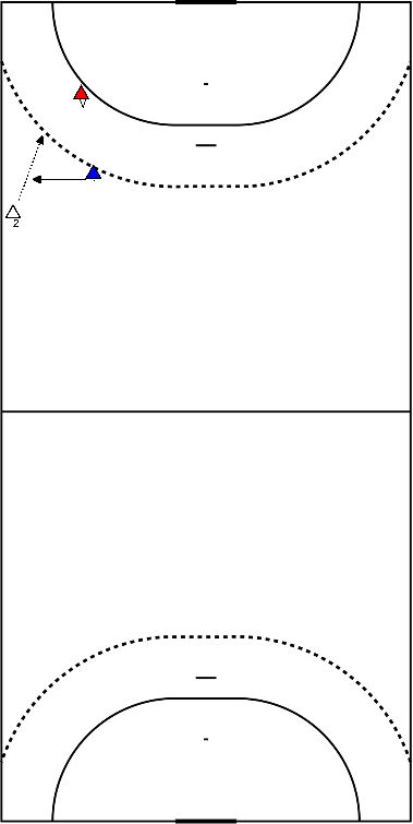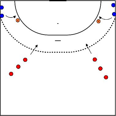 - voor de 9 meter palen of pion op de verdedigende posities.