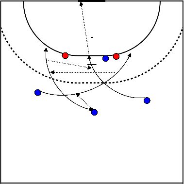 - Rond af door langs de verdedigend blokkerende rechterspeler (R1) te scoren.