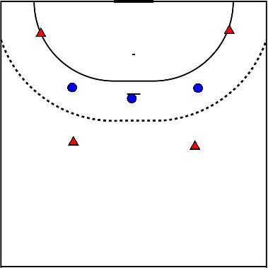 - Vijf spelers staan op de 6-meterlijn en houden elkaars handen vast.