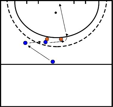 - Het wordt dan een 3 tegen 2 met de aanvaller die in het vak stond.