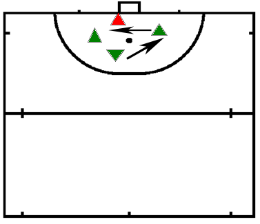 - Speler 1 loopt door zodat er een driehoek ontstaat tussen speler 1,2 en 3.