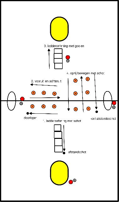 - Tijdens de oefening aandacht besteden aan de schottechniek.