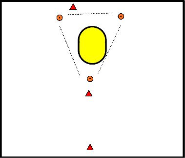 - 2 spelers in het aanvalsvak, 1 persoon voor rebound/aanvoer.