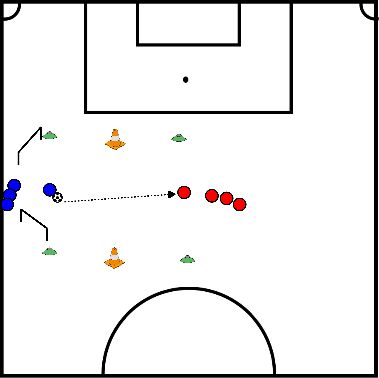 - 4 veldspelers plus een keeper tegen 5 aanvallers.