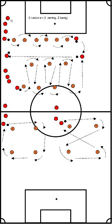 - Trainer roept links en rechts, spelers gaan naar die kant toe