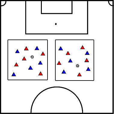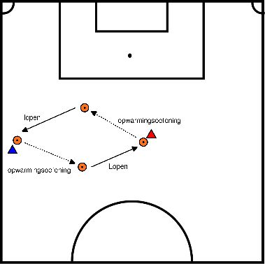 - We spelen 4 tegen 4, rest van de spelers langs de kant