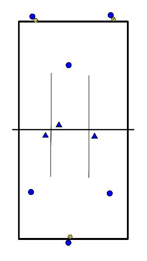 - Dynamisch: Zelfde als statisch, maar de speler volgt de bal. De serveerder wordt passer, de passer wordt afvanger, enzovoort.