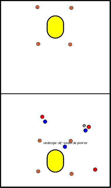 - Vorm tweetallen waarbij de verdediger centraal staat en de aanvaller opdrachten krijgt.