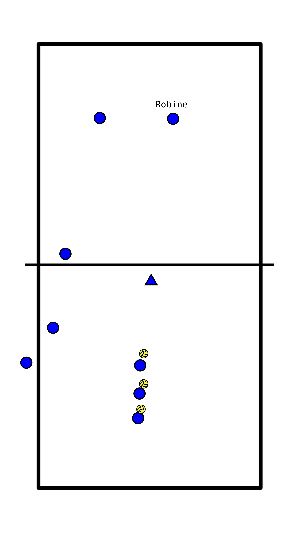 • Aanvaller: Snel naar de 3 meter klaar voor aanval.