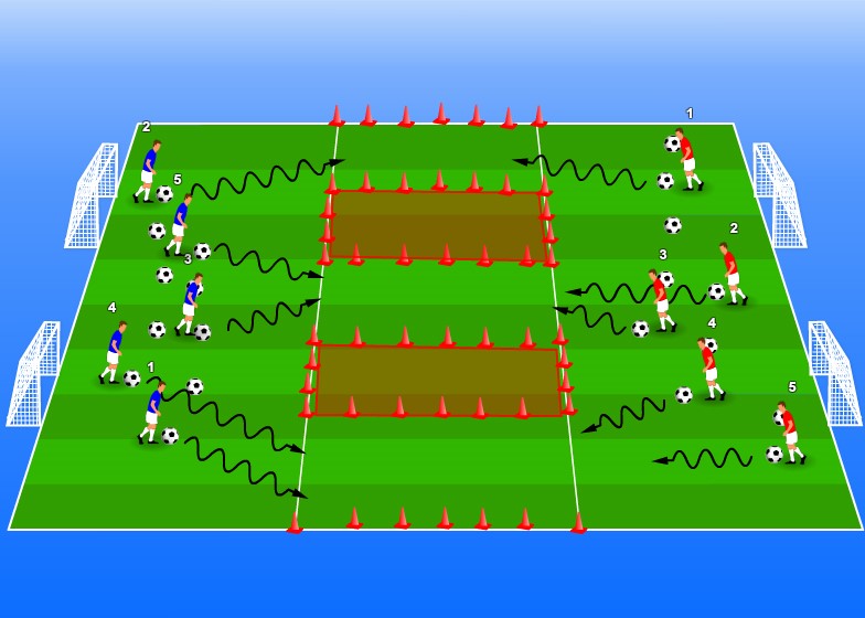 - Realizar exercícios de drible com o pé e o lado indicados.