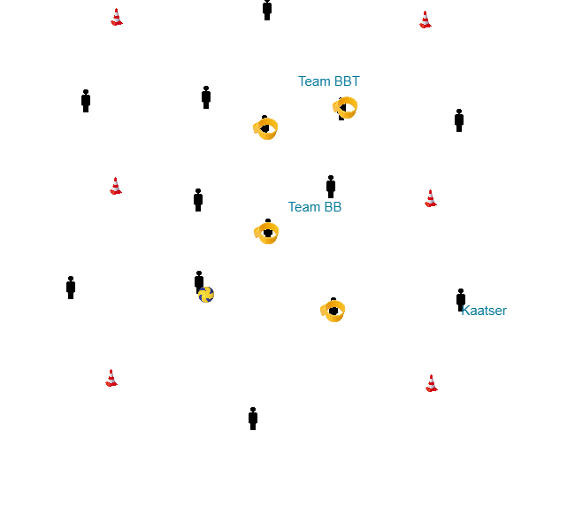 - Dividir a equipa com um máximo de 14 pessoas em dois grupos. (um grupo de coletes)