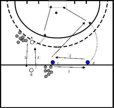 - O jogador em C recebe a bola no ponto D e passa-a para o ponto A.
