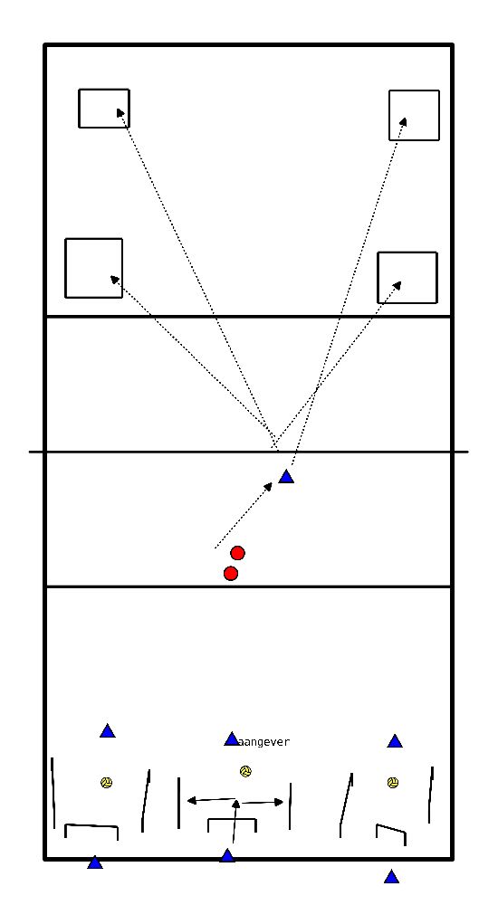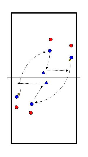 - Der Trainer kann angeben, wohin die Bälle geschlagen werden sollen, das Tempo der Aufstellungen bestimmen oder dass der Passgeber sofort nach dem ersten Pass eine Angriffsdeckung durchführen soll, um dann den zweiten Ball zu passen.