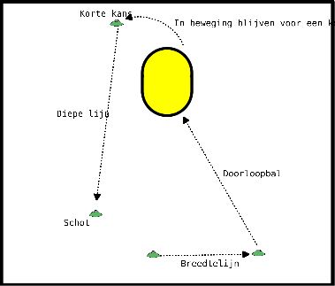 - After the through ball, player 1 keeps moving close to the basket for a short chance.