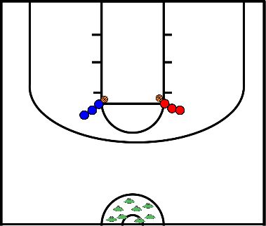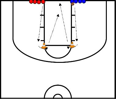- After the rebound, the shooter passes the ball back to the line they were in and rotates clockwise to the end of the next spot.