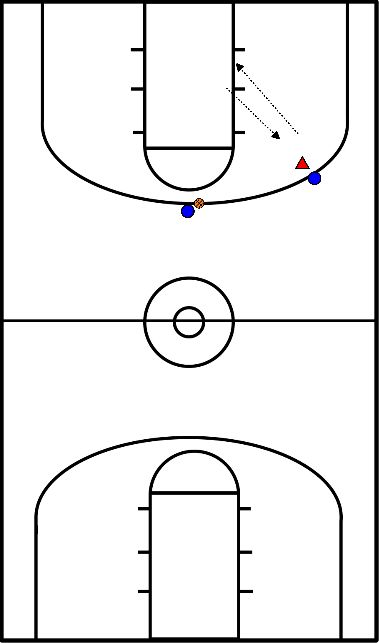 - If the dribbler manages to dribble between the sideline and the defender, they may score. The defender continues to defend.