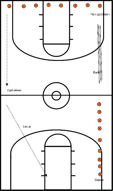 - Players dribble to the pawns in the middle, there they hold the ball and pivot 5x.