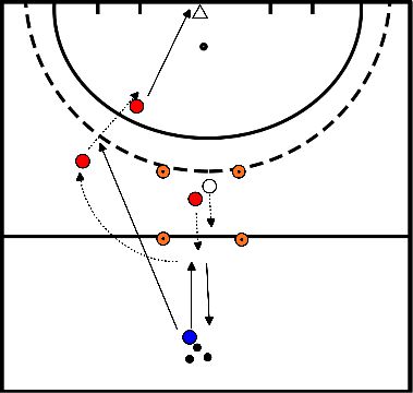 - B passes back to A and runs deep towards the circle -short quick action-.