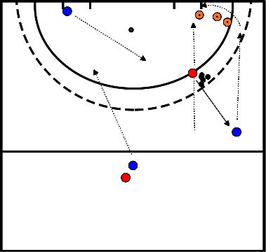 - The attackers take the ball somewhere on the dotted line and try to score.