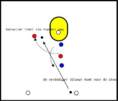 Note: The player on the side of the ball can also run in instead of the player in front. The action then comes from the other side of the box.