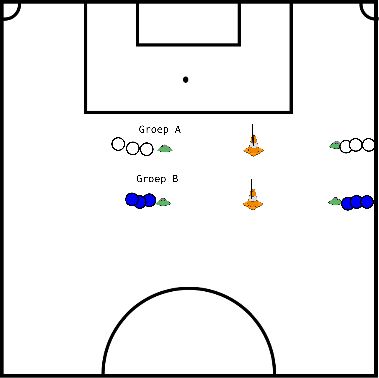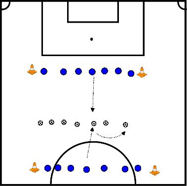 - Players pass the ball precisely through the lane of cones or markers and sprint after it.