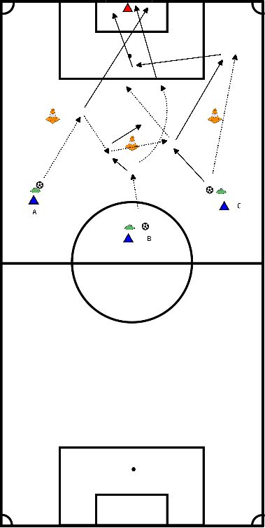 - Add an extra dimension by passing the ball in from the side when the ball is out.