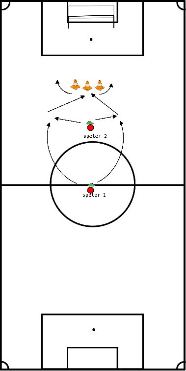 - Player 1 then passes to Player 2 who is waiting at a cone.