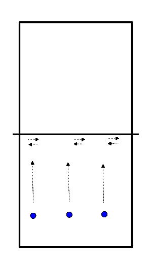 - Same as exercise 2. Now comes only a 2nd tip at about 5 to 6 meters. Defending facing the net!