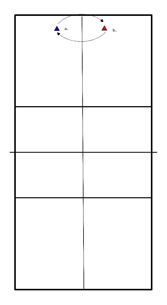 - Player starts at the backline for Club level and higher, or behind the middle for Cool Moves Volleyball.