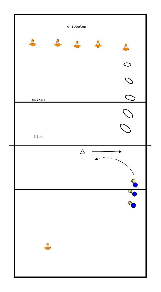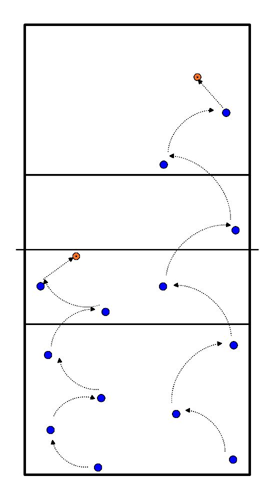 - Exercise 4: 1 sliding dive towards the centreline, another sliding dive towards the backline