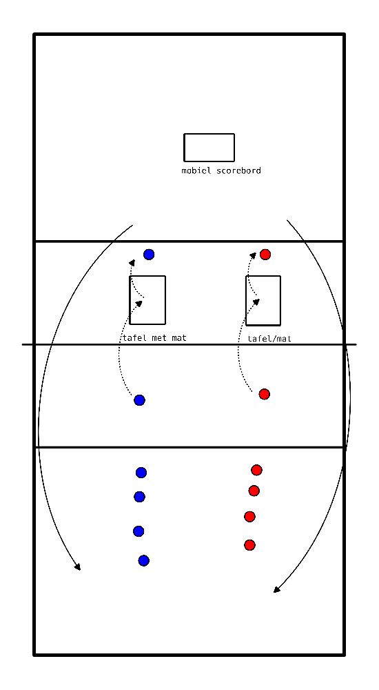 - Divide the team into two groups and have them form two rows facing each other on the 3-meter line.