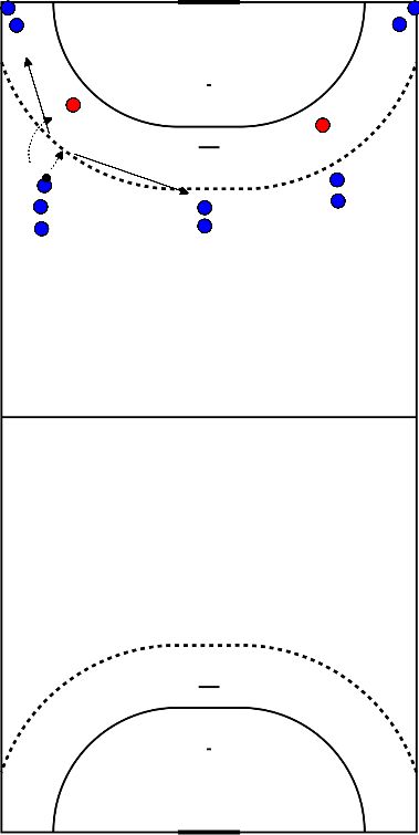 - Usted pone 1 jugador en el 1-metro, del 9-metro, posición de acumulación.