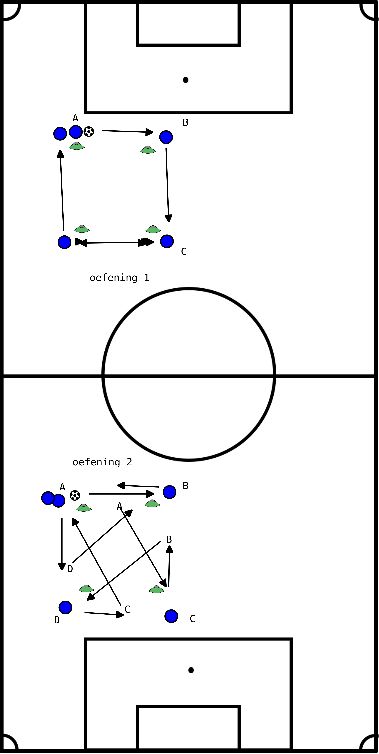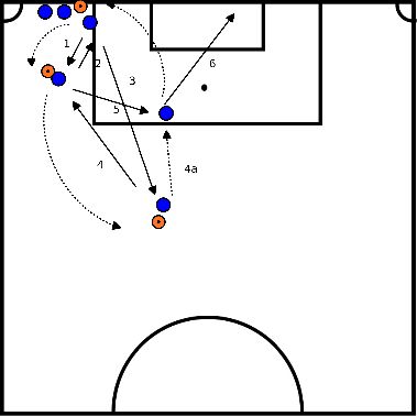 - Tan pronto como uno de los atacantes haya marcado, y el otro aún no, entonces cambian inmediatamente, haciendo la situación 1 contra 1 | 2 contra 2