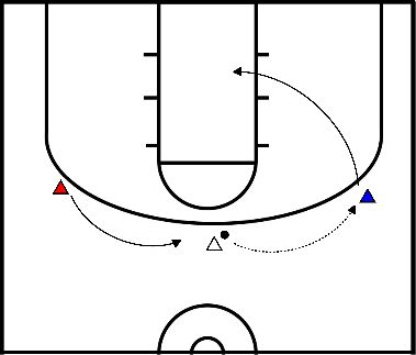 - Les joueurs de devant exécutent un layup et passent au premier joueur sans ballon de l'autre rangée.