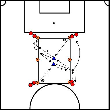 - Ils essaient d'amener le ballon au joueur blanc qui se trouve dans une zone délimitée.
