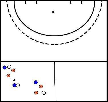 - Les attaquants prennent la balle quelque part sur la ligne pointillée et essaient de marquer.