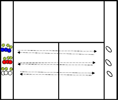 - Placez des cônes sur la ligne de fond avec une balle de tennis dessus.