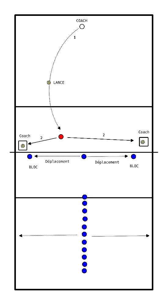 - Défendez deux balles venant de l'attaquant extérieur ou de l'attaquant côté droit.