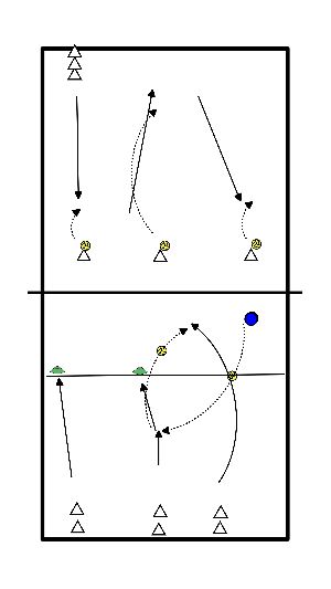 - L'entraîneur frappe ou joue un ballon qui est d'abord passé au passeur.