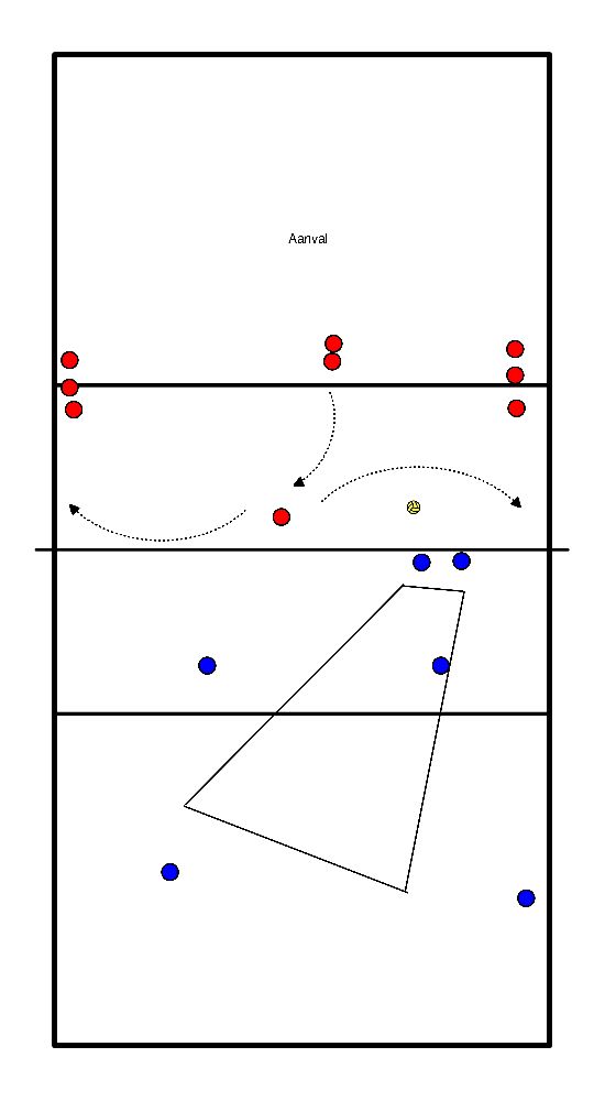 - les personnes sur les postes ont un ballon et l'un des joueurs appelle le numéro du poste et cette personne joue ensuite le ballon qui doit être défendu par la personne sur le terrain.
