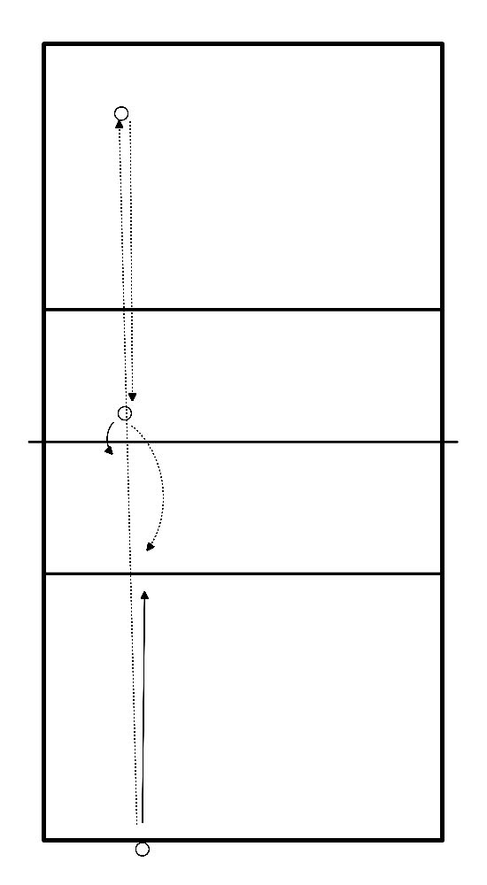 Tu fais une passe en courant vers le filet et tu reviens vers la ligne arrière.