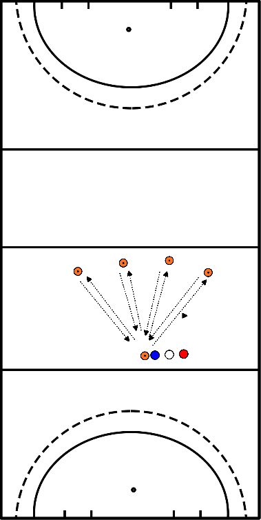 - Il giocatore 3 passa la palla indietro direttamente al cono D