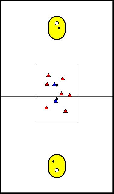 • Mantenere un triangolo difensivo nell'area del canestro e davanti al campo.